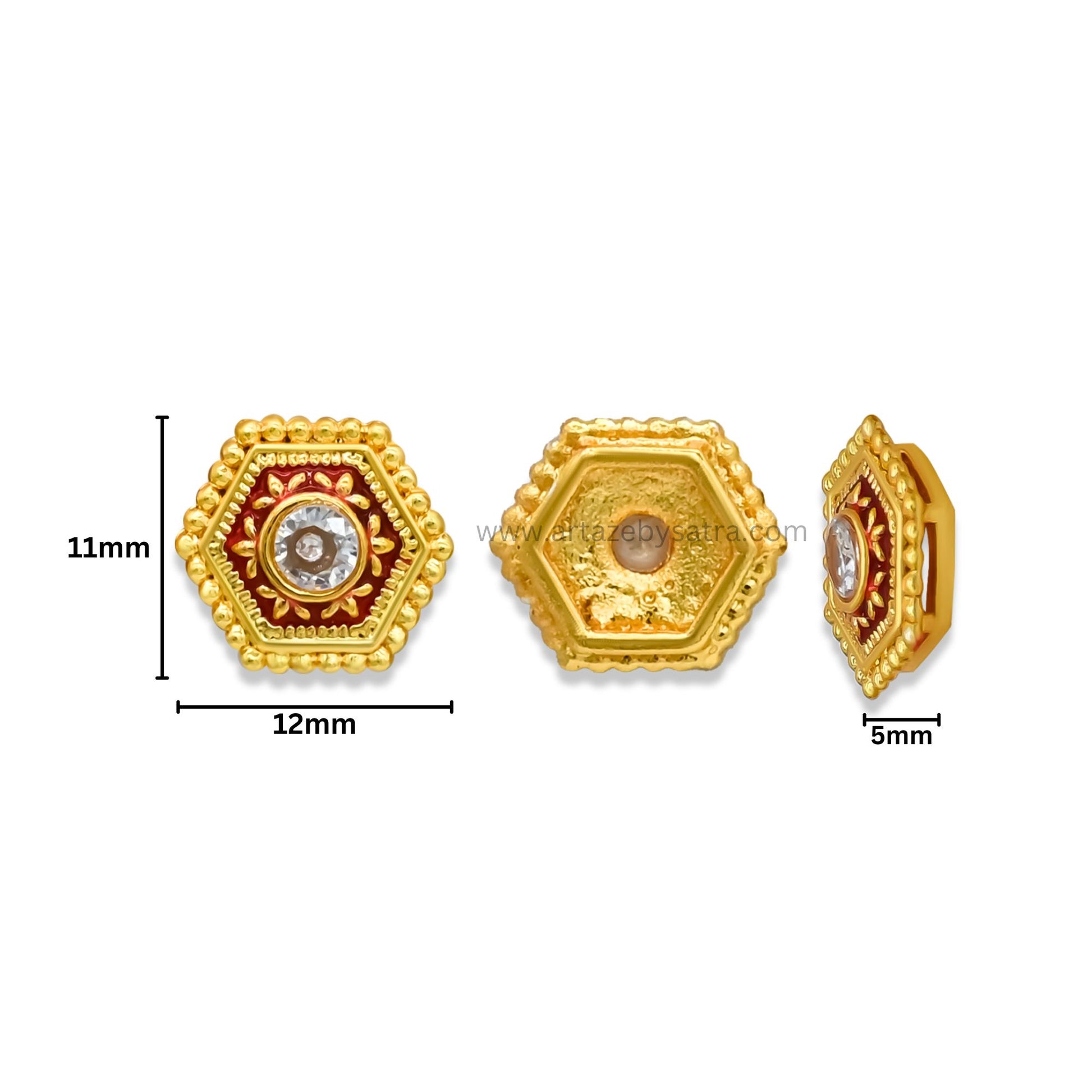 Hexagon Meenakari Kundan Beads | Size : 12mm | Qty : 12pcs | MK33