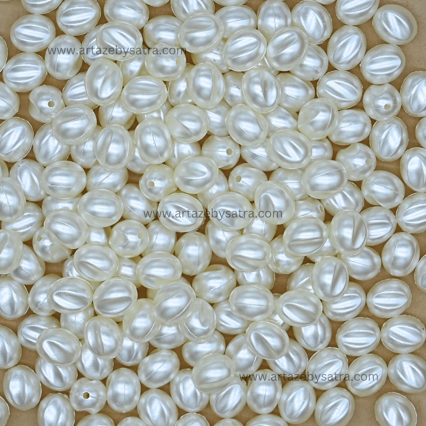 Smooth Striped Oval Plastic Pearl Beads | Size : 11mm
